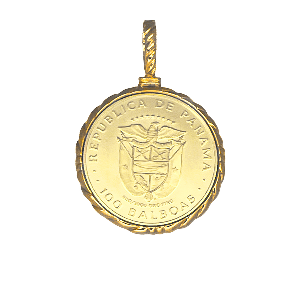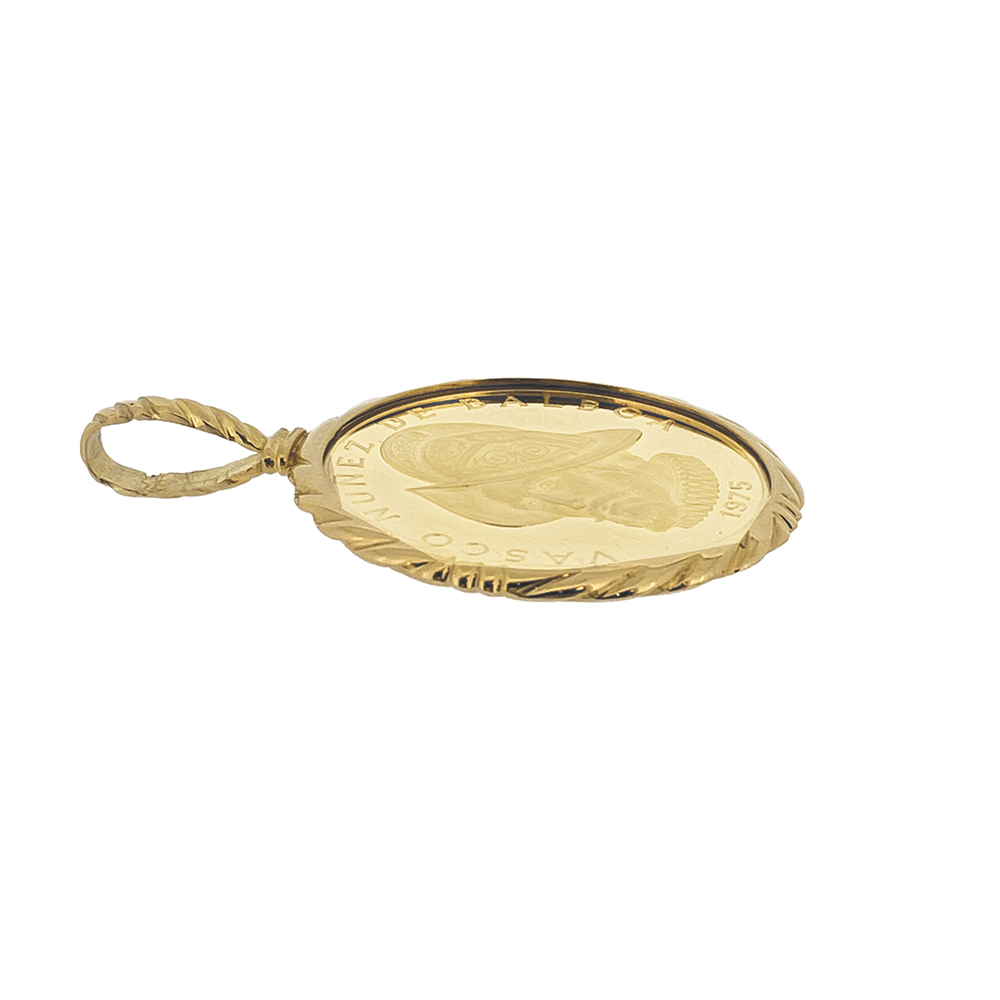 バスコ・バルボアはスペインの探検者であり、パナマ地峡を横断し太平洋岸に出た新大陸征服者のひとりです。本品はバルボア生誕500年記念して発行された金貨となります。装着すると鏡面仕上げになっておりますので他のコイントップより輝いて綺麗に見えますのでよく目立ちます。※装着写真のチェーンは別売です。20g・50cmの6面ダブル喜平ネックレスを使用しています。バチカンは別途料金にて加工も承っており大きくする事も可能です。お気軽にお問合せくださいませ。