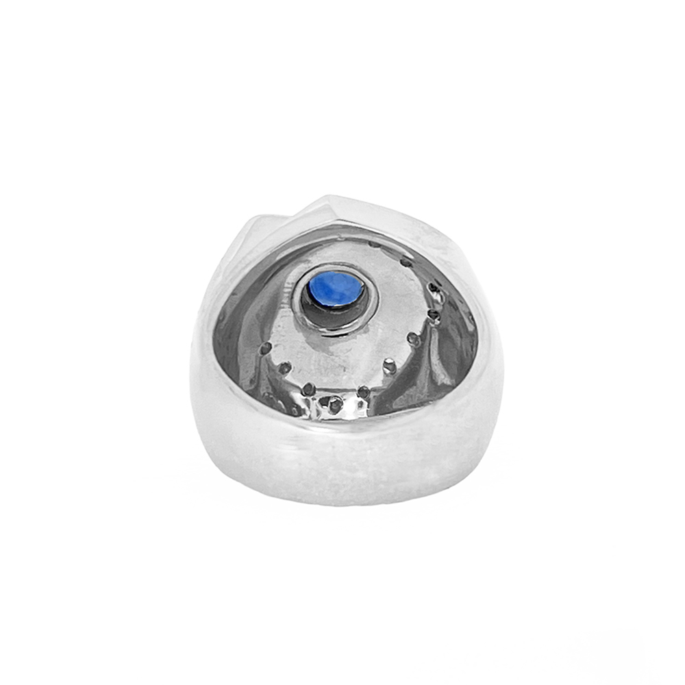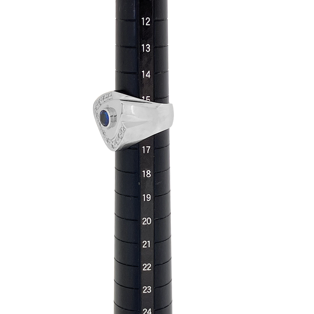 サファイアは、9月の誕生石であり石言葉は「成功・誠実・慈愛」です。持ち主の意志の力を強くサポートし成功へと導いてくれます。叶えたい夢や願いがある方におすすめです。また結婚23年の「青玉婚式」の記念として大切なパートナーへの贈り物としていかがでしょうか。 装着するとブルー サファイアの青色がパっと目を引き、周囲にセッティングされた豪華なダイヤがキラキラと煌めきます。