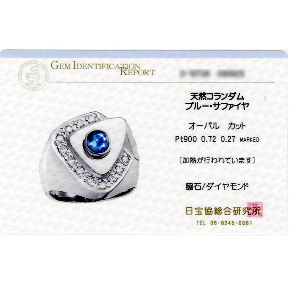 Pt900 32.21g ブルー サファイア 0.72ct ダイヤモンド 0.27ct プラチナ メンズ リング 日宝協総研カード鑑付
