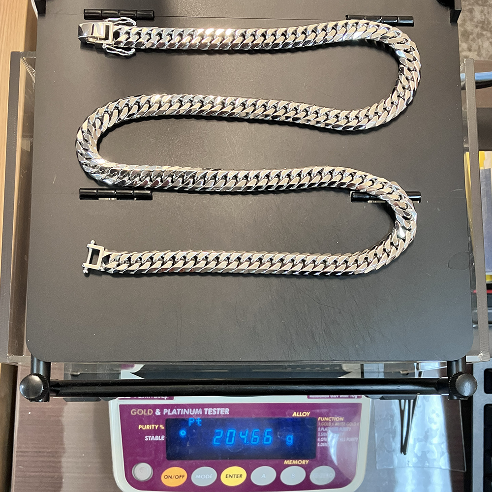 Pt850検定マーク付、204.66gの6面ダブル喜平ネックレスです。