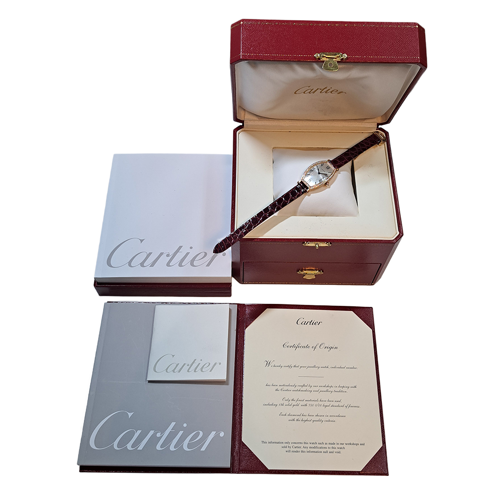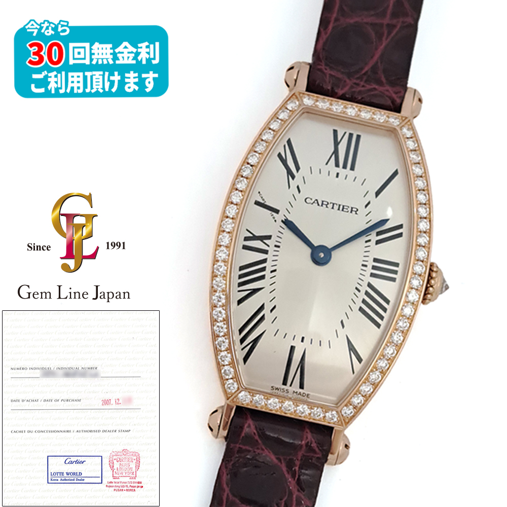 カルティエ トノー WE400331 純正ベゼルダイヤ ピンクゴールド無垢 シルバー Dバックル ギャラ付 レディース 手巻き 時計