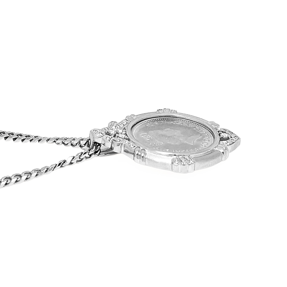 装着すると純プラチナのコインとダイヤモンドが胸元で豪華に輝きます。プラチナコインは、流通が少ないため希少価値が上がっており入手困難です。お早めに検討をお願いします。