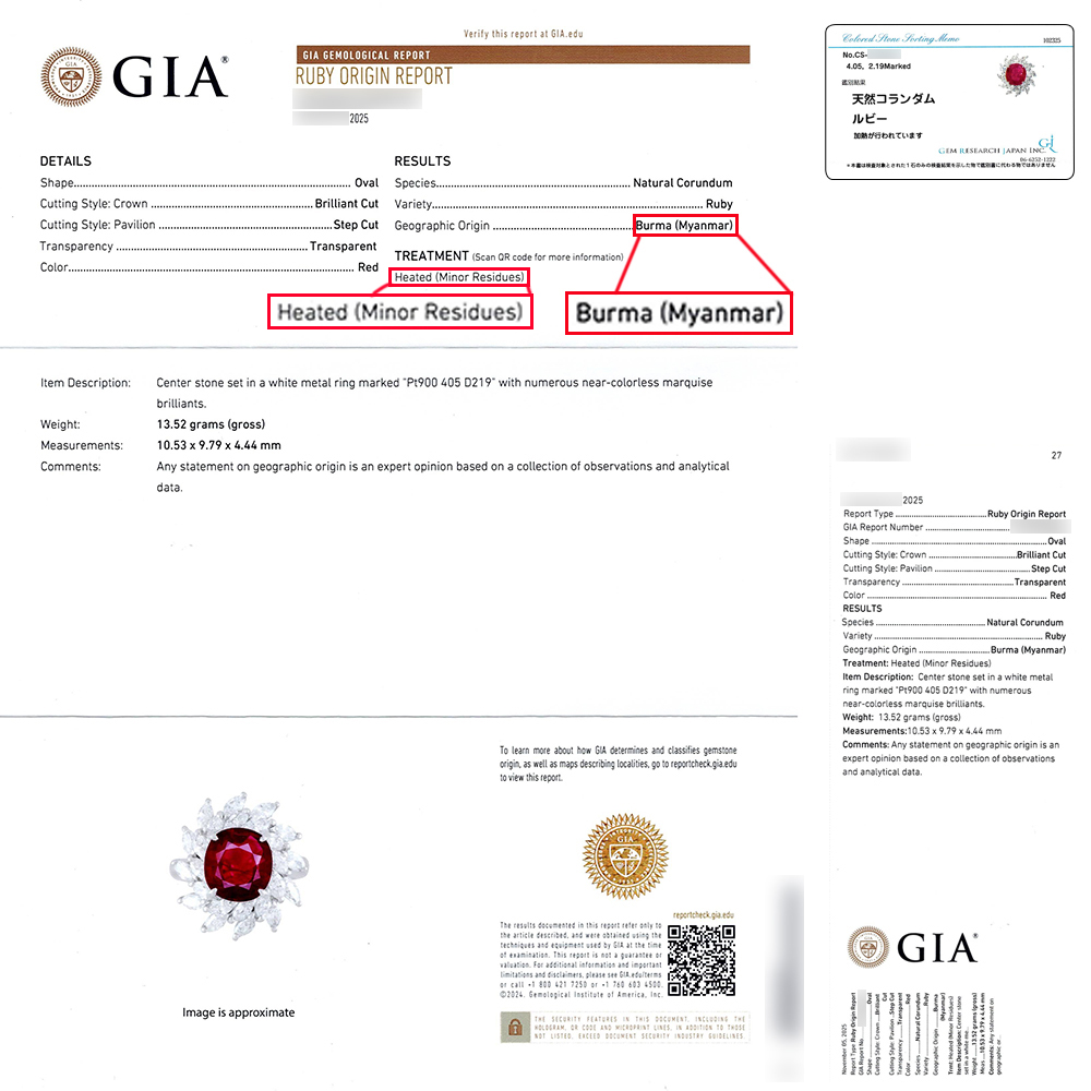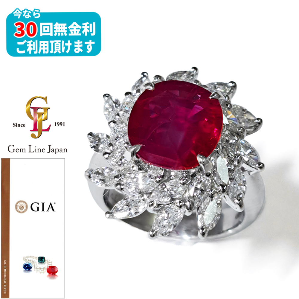 Pt900 GIA鑑別・GRJソーティング付 ビルマ産 RED ルビー 4.05ct ダイヤモンド 2.19ct プラチナ リング