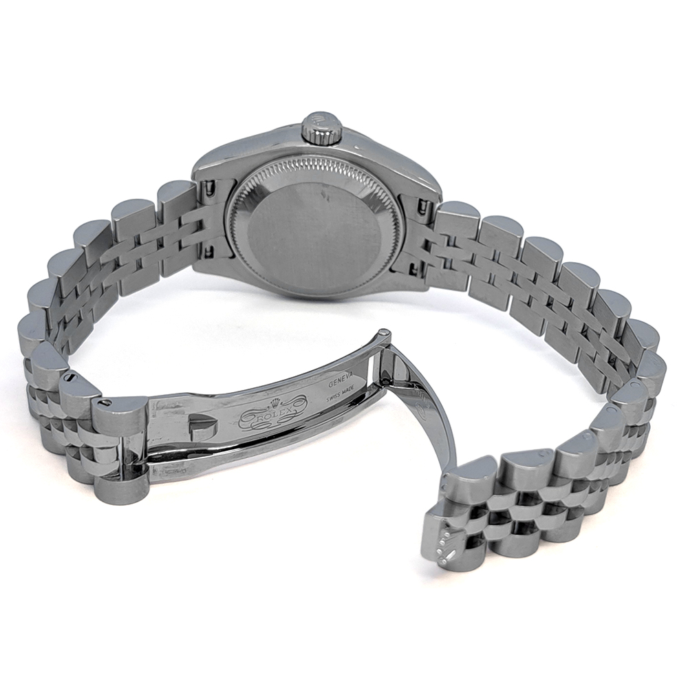 ダイヤモンドインデックスが主流の中で179174NGSはサファイアインデックスとホワイトシェルダイヤルを組み合わせた市場に余り見かけない珍しいタイプのモデルです。サファイアの深みのある青とシェルの輝きがは、他人と被りにくい特別なレディース時計をお探しの方にお勧めです。