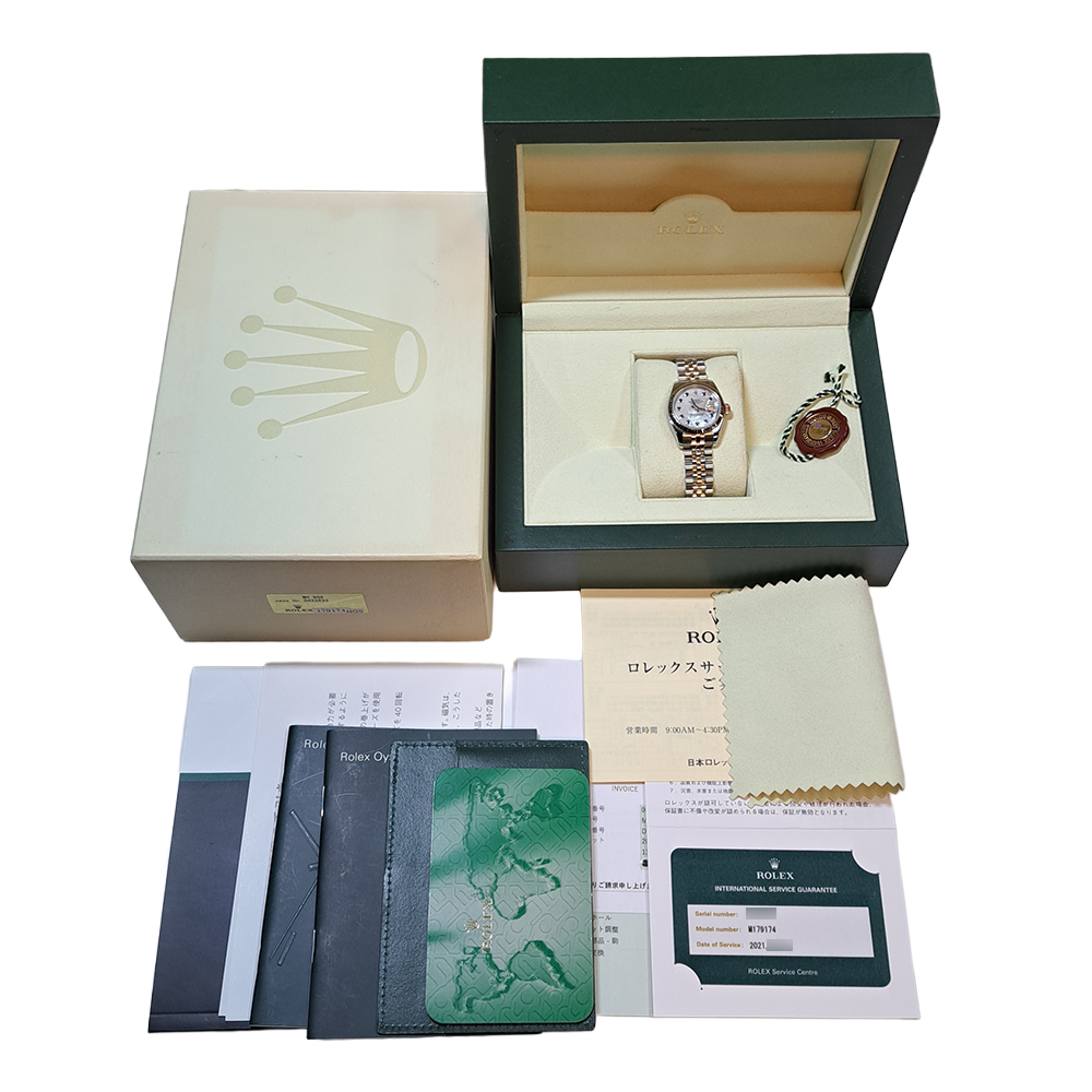 ロレックス デイトジャスト 179174NGS D番 純正サファイア ホワイトシェル レディース 自動巻 時計