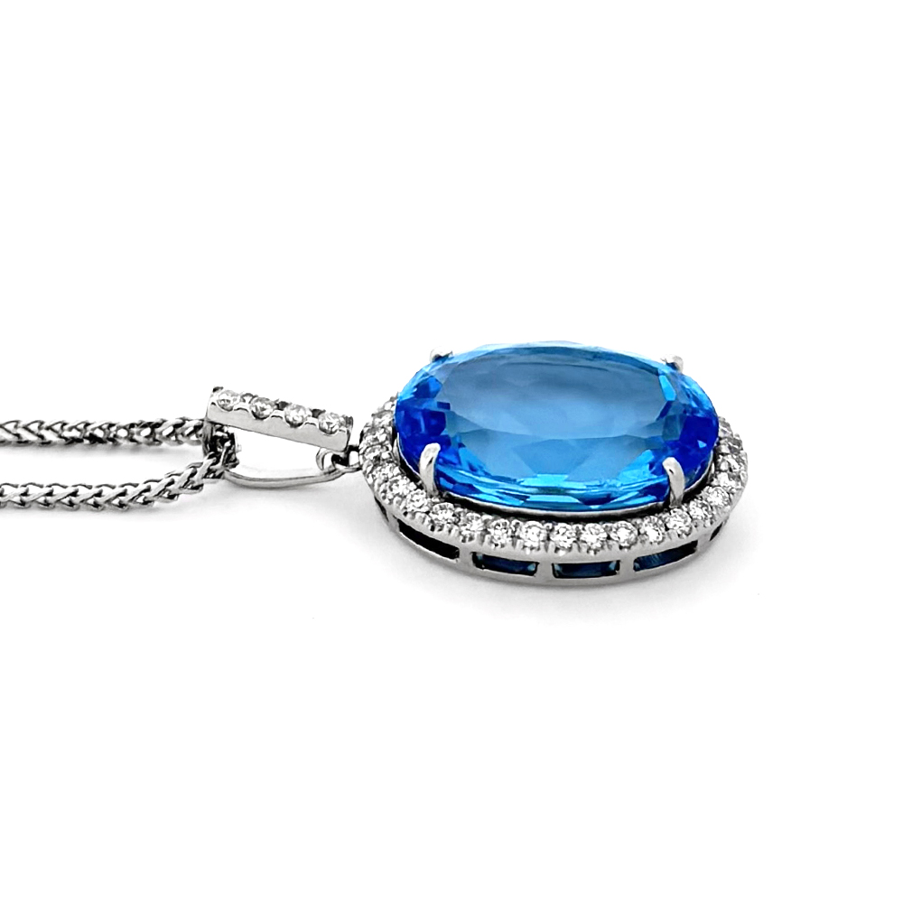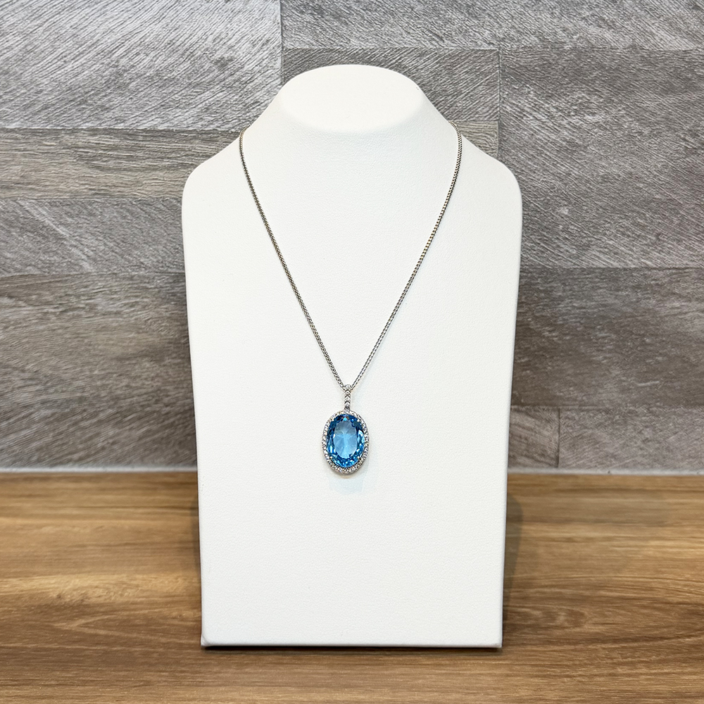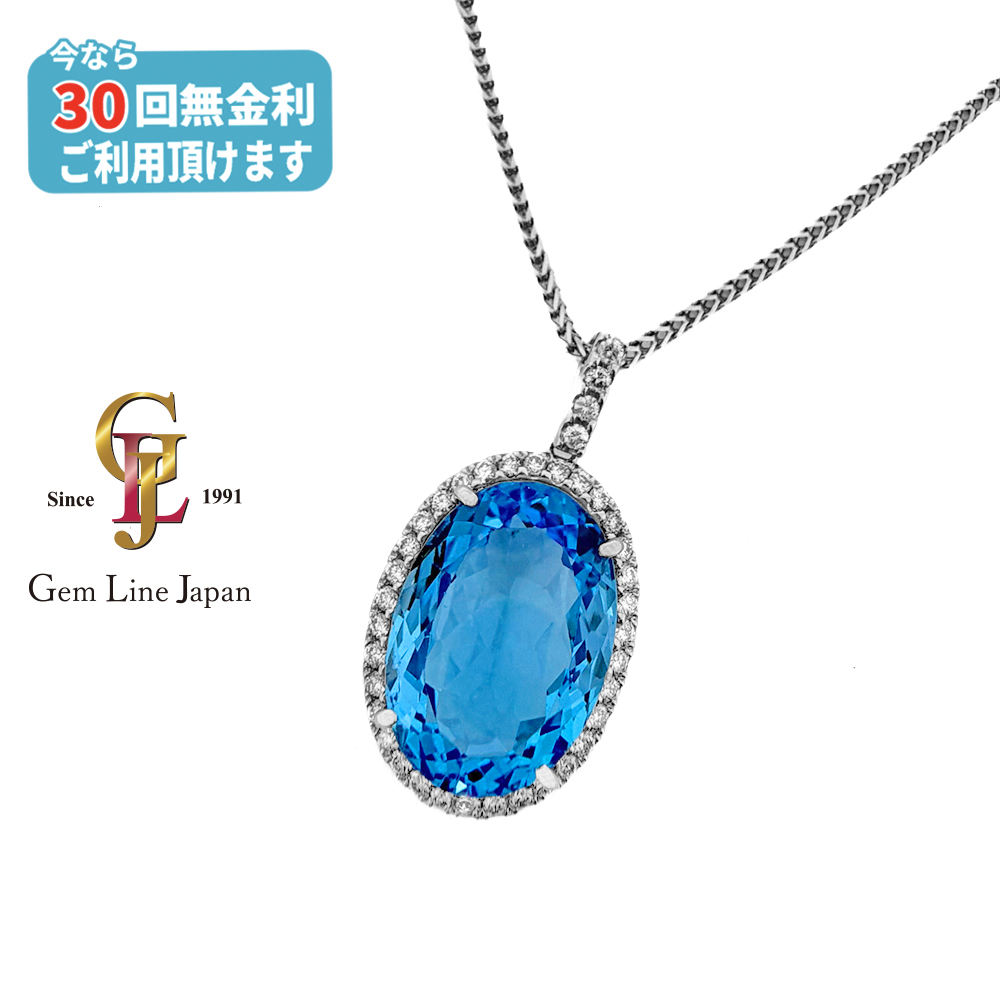 新品 Pt900/Pt850 ブルートパーズ 15.44ct ダイヤモンド 0.47ct ネックレス