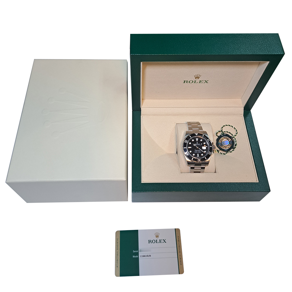 ロレックス サブマリーナ 116610LNが入荷致しました。ダイバーズウォッチとして不動の人気を誇るサブマリーナ、ステンレス素材にブラックダイヤルとベゼルの引き締まったフォルムはダイビングだけではなくビジネスシーン等にも活躍してくれます。ギャランティに2019年に国内正規販売店にて購入した記載があります。ルーペで拡大するとラグに微細な傷と打痕がありますが、肉眼では殆ど気にならない程度です。