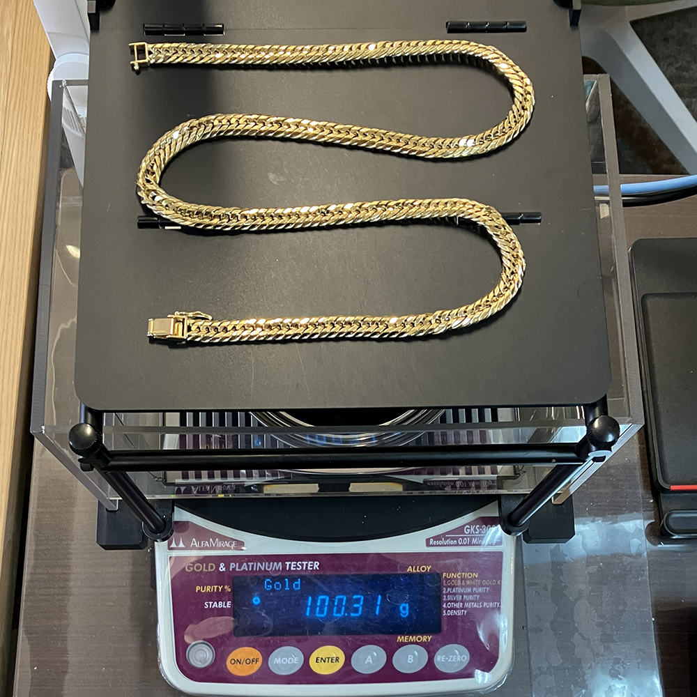 K18検定マーク付、100.31gの12面トリプル喜平ネックレスです。
