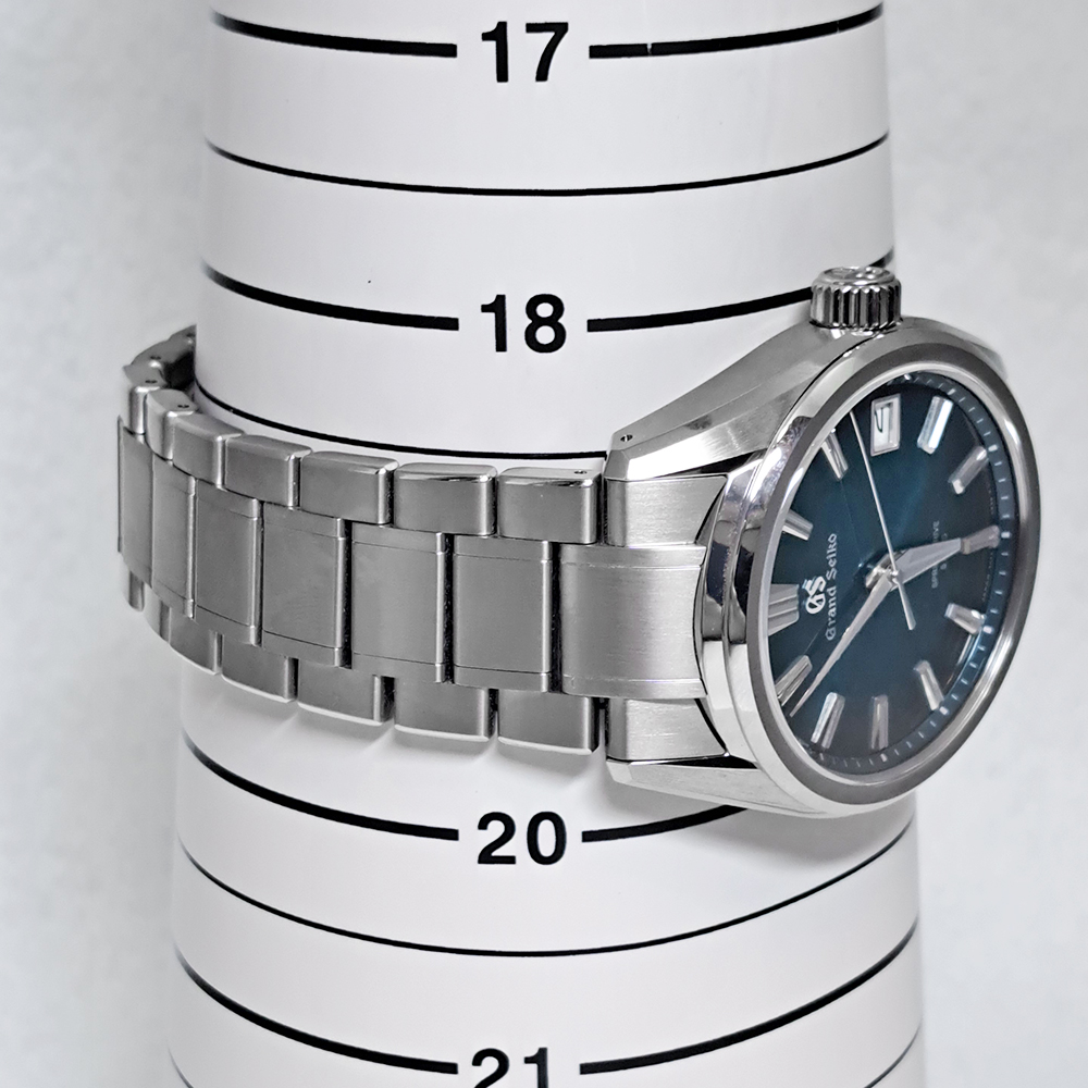 グランドセイコー SLGA025 エボリューション9 阿寺ブルー スプリングドライブが入荷致しました。長野県有数の景勝地として知られる阿寺渓谷、四季折々に表情を変える中、ひと際美しさを放ち続ける清流は「阿寺ブルー」と呼ばれ、透明度の高いブルーグリーンのグラデーションカラーをダイヤルで表現しております。スプリングドライブなので、自動巻きでありながらクォーツ並みの精度を誇りますので、時間に厳しいサラリーマンの方にもお勧めの商品です。ギャランティに2026年に国内正規販売店にて購入した記載があります。