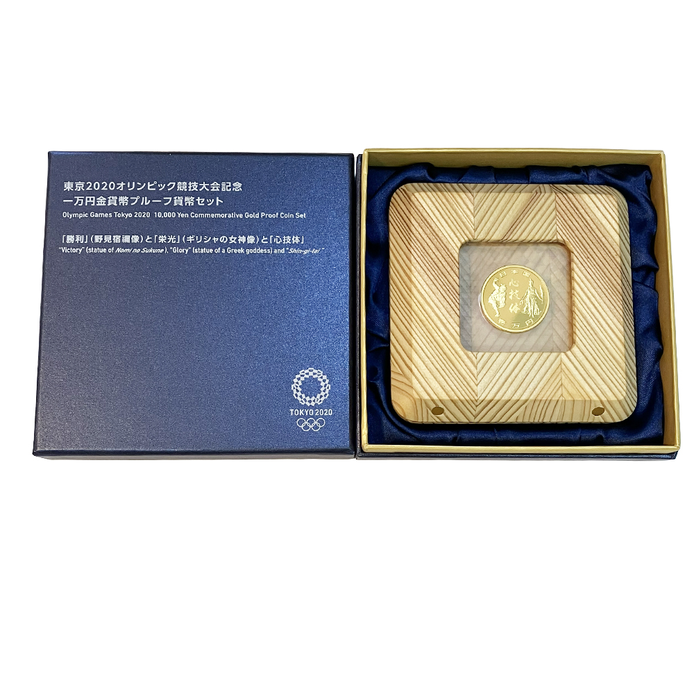 未使用品 2020東京オリンピック競技大会記念 1万円 プルーフ金貨が入荷しました。表面に「勝利」(野見宿禰像)と「栄光」(ギリシャの女神像)と「心技体」が描かれており、裏面に東京2020オリンピック競技大会エンブレムが描かれております。特製ケースは分解して組みなおすと金貨を鑑賞できる仕様となっております。金貨を密閉するアクリルケースには見る角度によって文字が変わるホログラムが入っております。