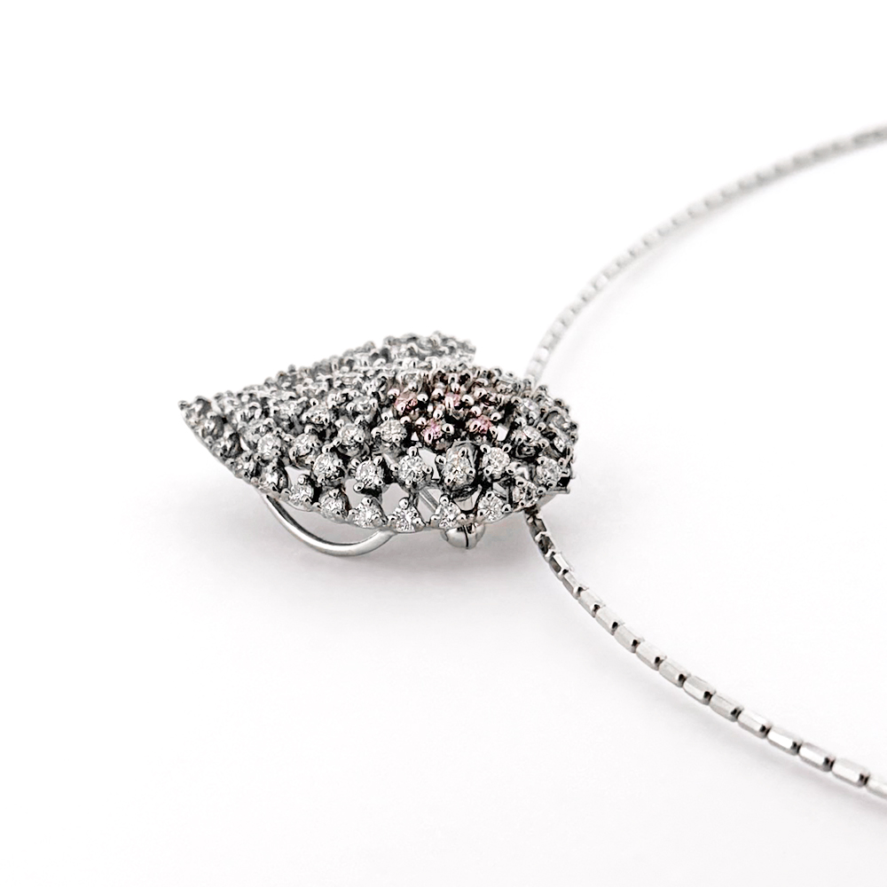 愛らしいフォルムのハートモチーフが可愛らしいネックレスが入荷いたしました。敷き詰められた上質なダイヤモンドのサイドには5石のピンクダイヤモンドがお花のように配置され、さりげなく優しく輝きます。