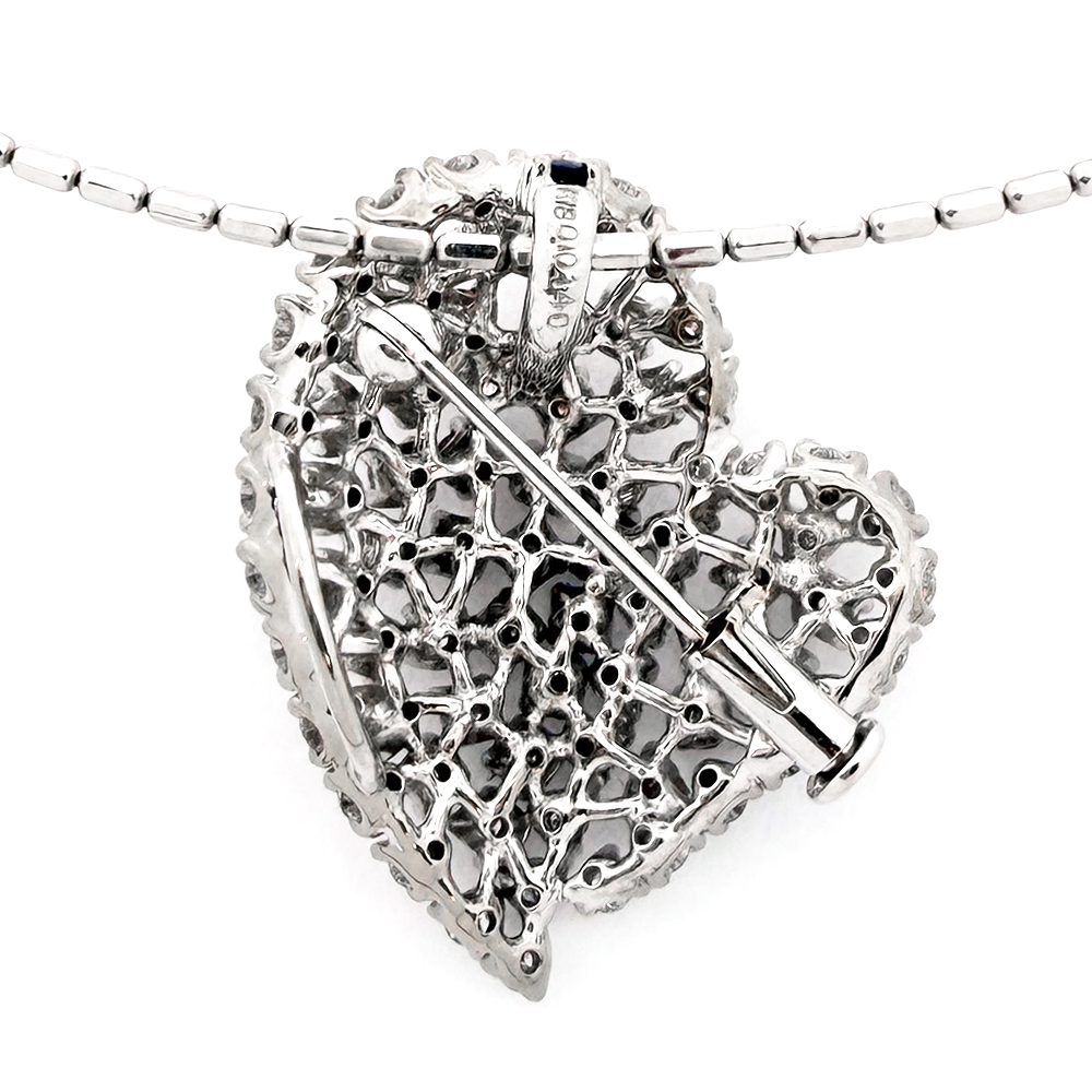K18WG ピンクダイヤモンド 0.10ct ダイヤモンド 1.40ct ブルーサファイア ハートモチーフ ネックレス