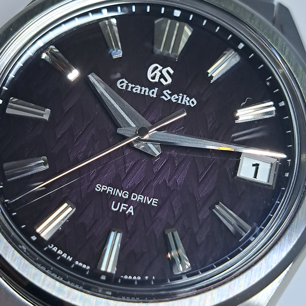 グランドセイコー SLGB005 樹氷 バイオレットが入荷致しました。こちらの商品は、スプリングドライブ U.F.A.と搭載したモデルで、なんと年差が±20秒という驚異的な高精度を実現したモデルです。ダイヤルは信州地方の樹氷の森が静かに目覚める夜明けの神秘的な情景を、バイオレットカラーの繊細なグラデーションで表現されています。ギャランティに2026年に国内正規販売店にて購入した記載があります。