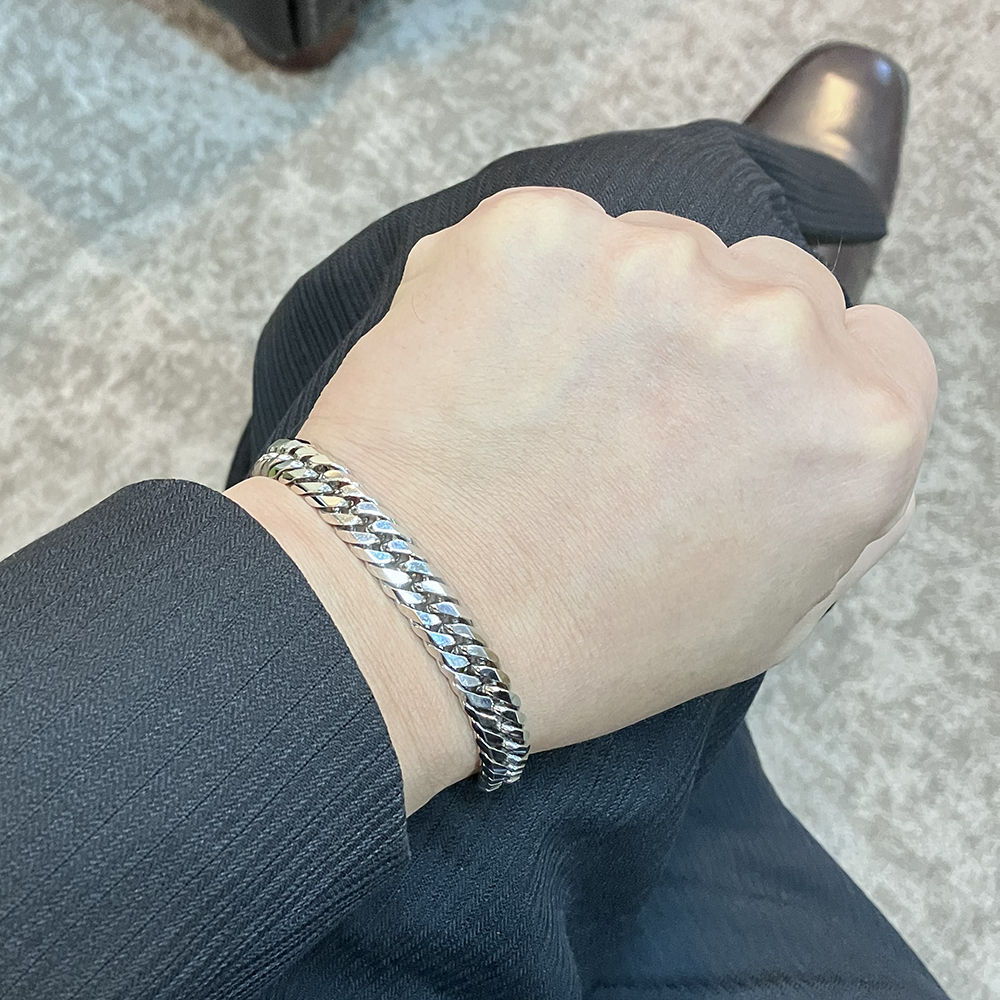 Pt850検定マーク付、、52.40gの6面ダブル喜平ブレスレットです。