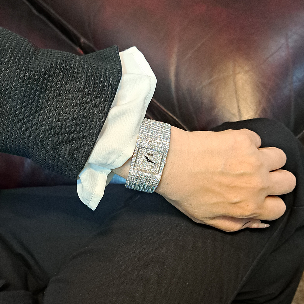 ピアジェ ライムライト HJ GOLD BRACELET が入荷致しました。ホワイトゴールド素材にケースからベルト、ダイヤルまで全面にダイヤモンドが施されたピアジェの最高級モデルです。最大の特徴である全面のダイヤモンドが光を受けてきらきらと輝き腕元をゴージャスに演出してくれます。こちらの商品は目立った傷等のない綺麗な状態です。メーカーにて2026年4月にオーバーホールも実施しておりますので、安心してご使用して頂けます。