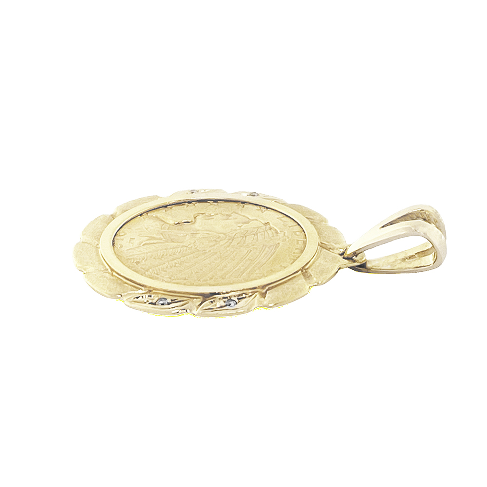 13.57g K21.6 K18 オールド インディアン イーグル 5ドル 金貨 ダイヤモンド 0.02ct コイン トップ