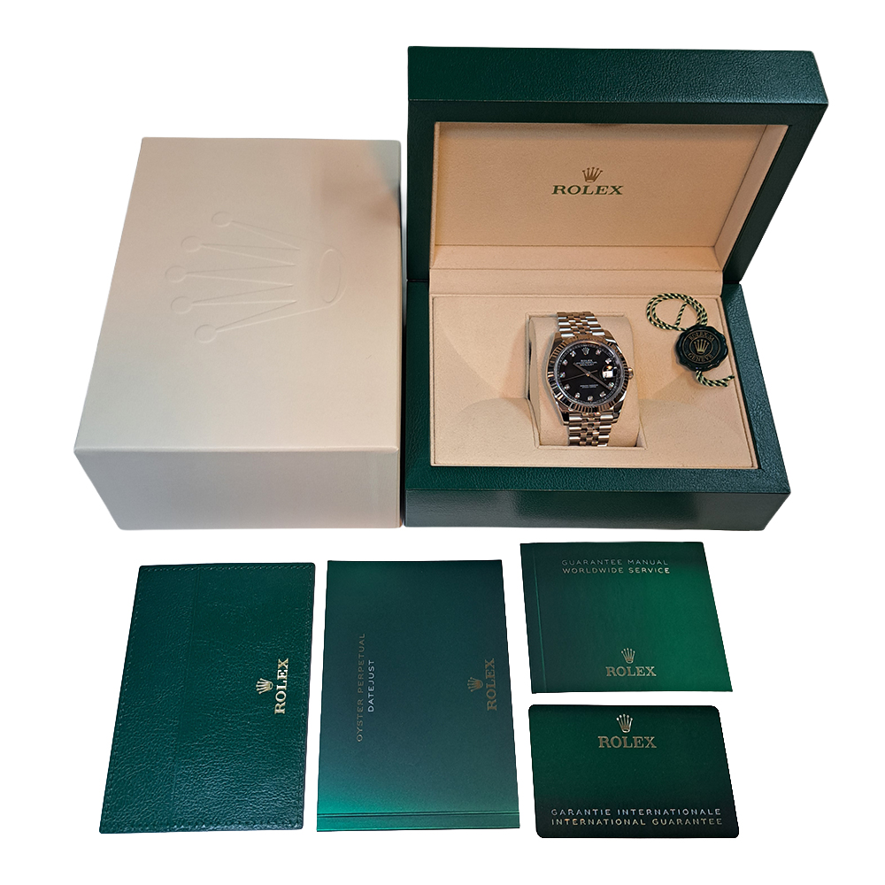 ロレックス デイトジャスト 126334G ブラックが入荷致しました。ブラックダイヤルに10P純正ダイヤモンドをセッティングしたゴージャスなモデルです。こちらの商品は目立った傷等の無い綺麗な状態です。ギャランティに2023年に購入した記載があります。