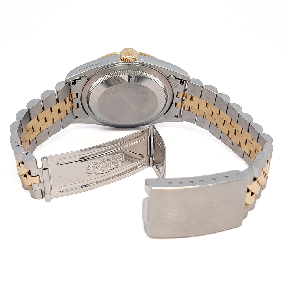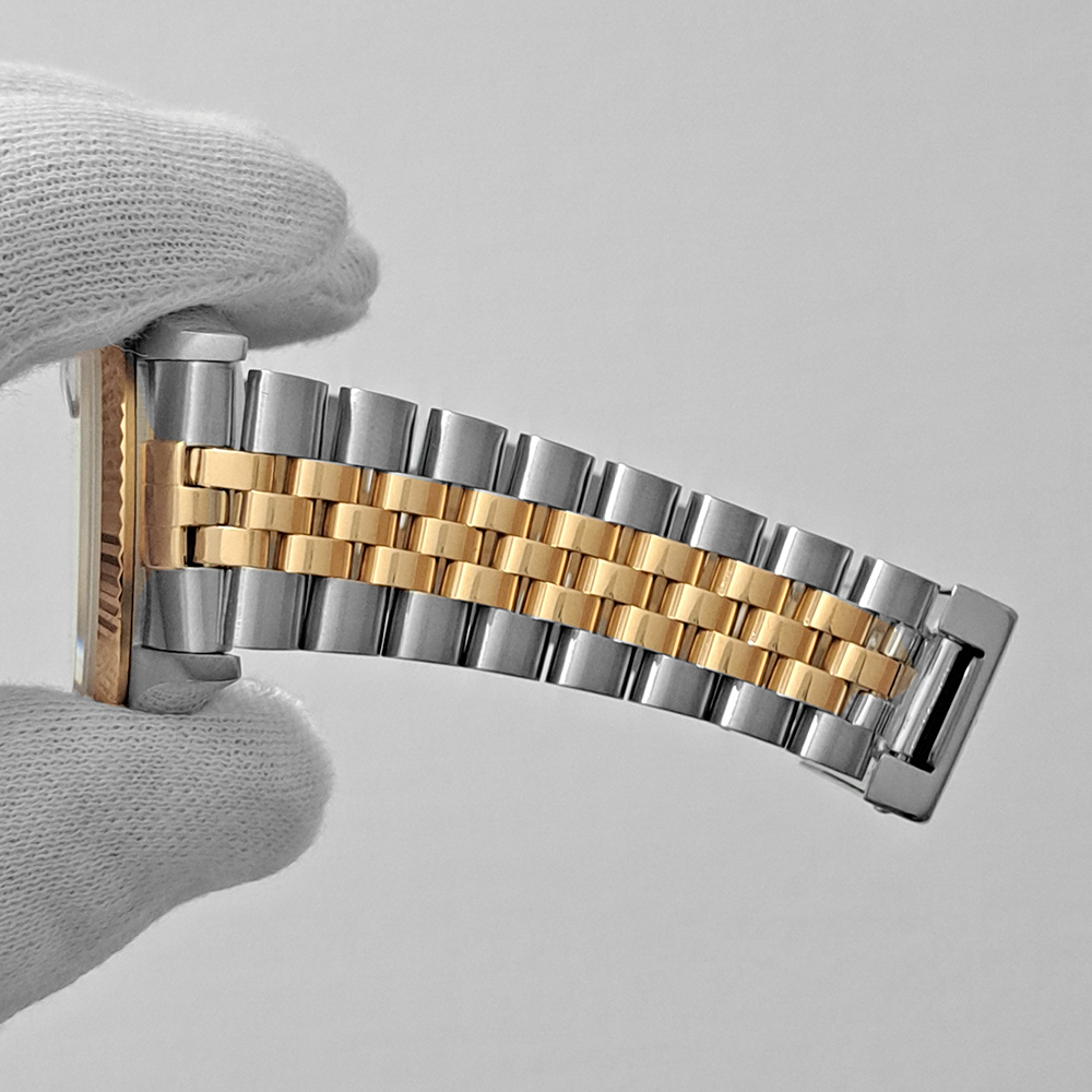 ジュビリーブレスレット、フルーテッドベゼルとの組み合わせは、華やかでエレガントな印象を際立たせています。普遍的なデイトジャストの中でも、特に個性的な一本をお探しの方にお勧めです。
