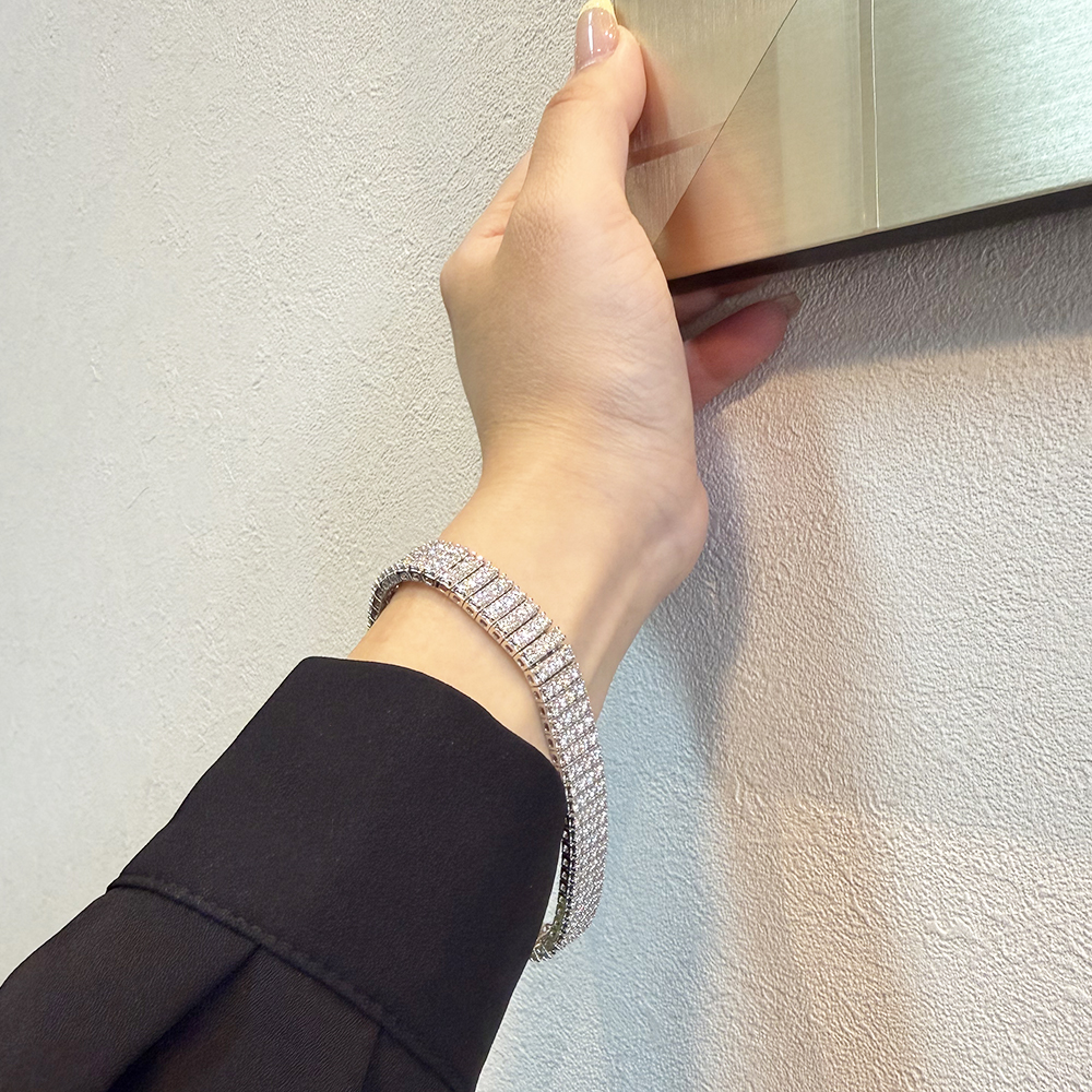 圧巻の全石ハート&キューピットダイヤモンドを10ctも使用した豪華なブレスレットです。やや幅広のデザインは存在感抜群で、遠目からでも目を惹くラグジュアリーで上品な輝きはまさに一生ものの品質です。