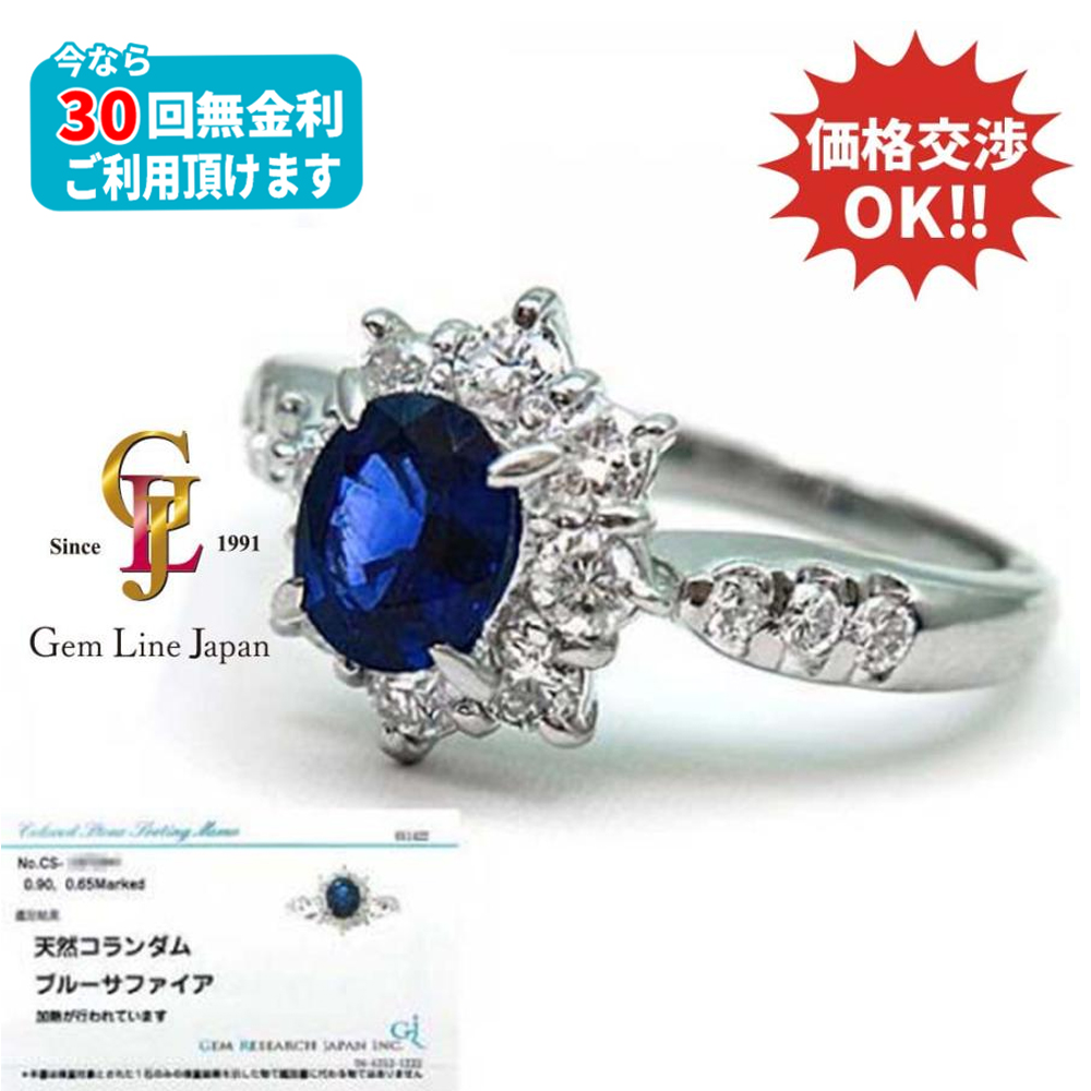 Pt900 サファイア 0.90ct ダイヤモンド 0.65ct リング GRJソーティング付